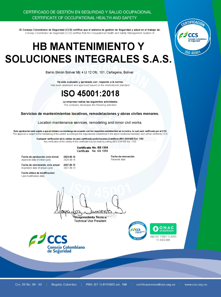 Informe Res 0312 – HB MANTENIMIENTO Y SOLUCIONES INTEGRALES SAS
